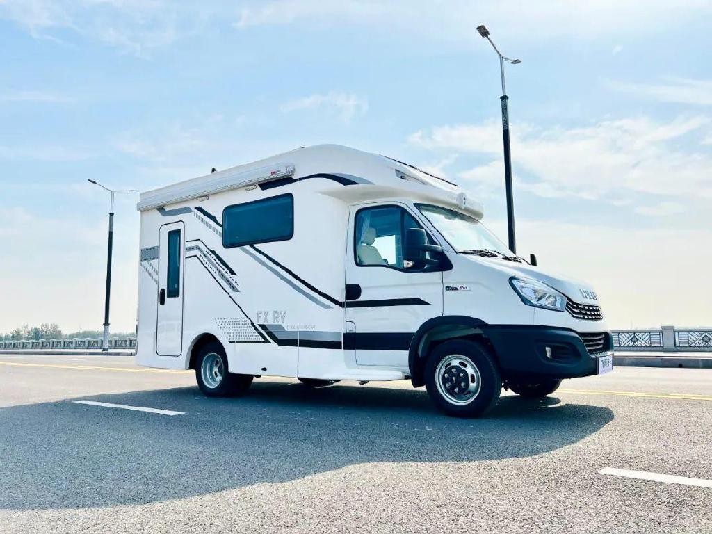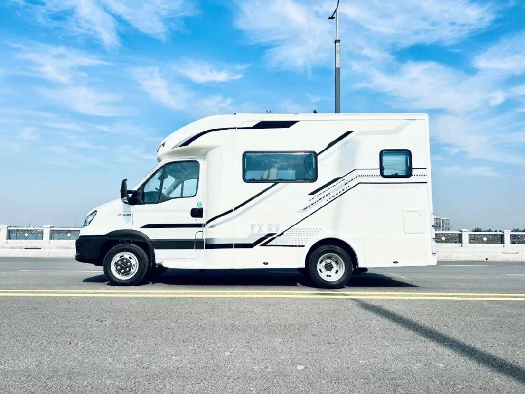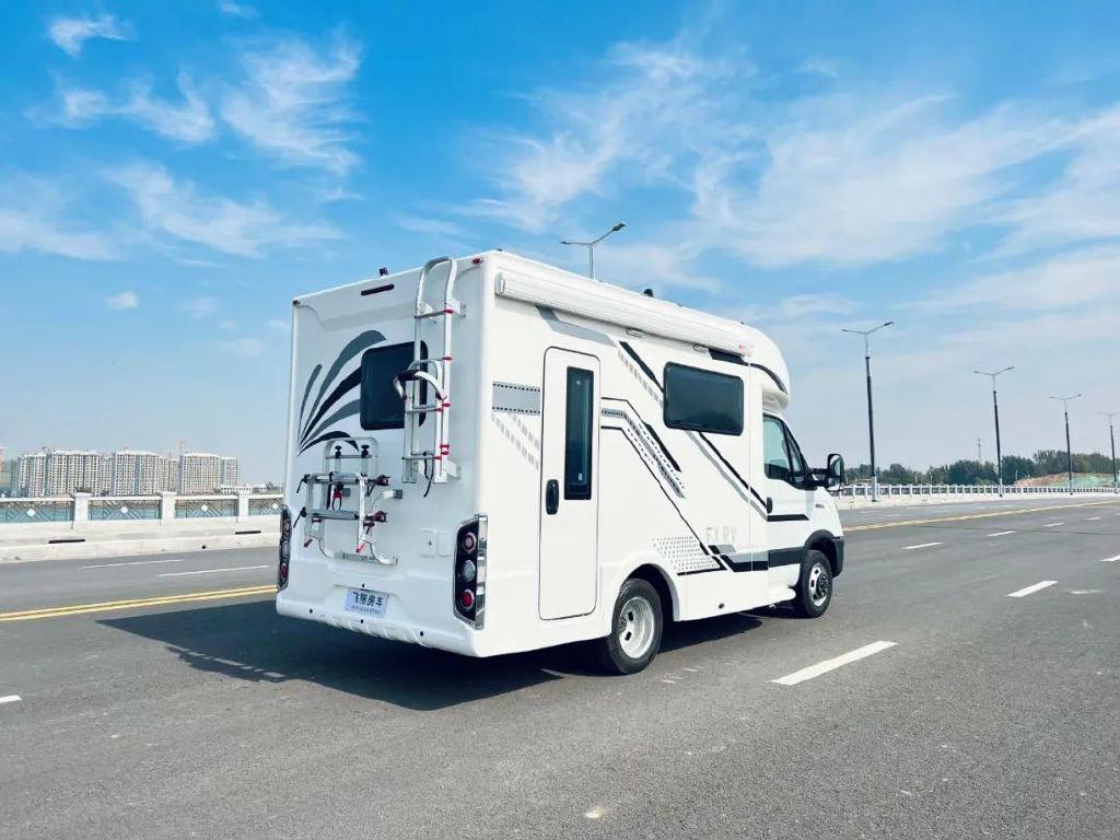 车辆外侧配置丰富,配备有超大尾置储物舱、联动的电动踏步、进口户外遮阳棚、户外LED照明灯、外接市电口、重力加水口等,车尾同样提供了选装类户外设施,包括有后爬梯和自行车架等。